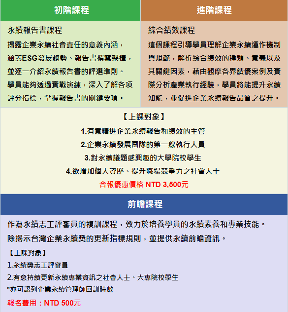 企業永續菁英培訓班讓您一手掌握永續世代的卓越關鍵!